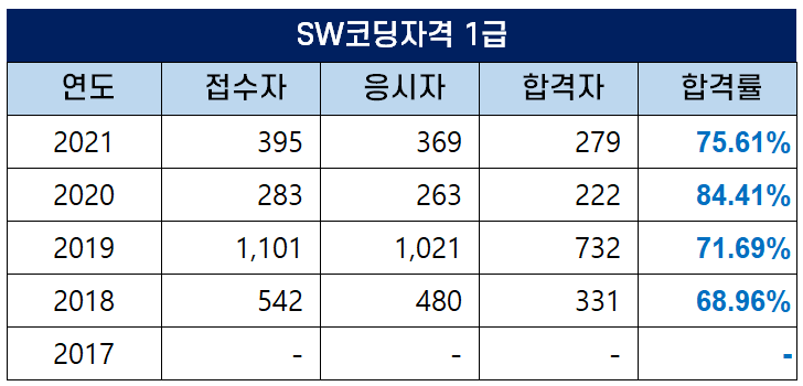 SW코딩자격 1급 합격률