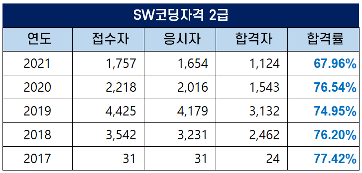 SW코딩자격 2급 합격률