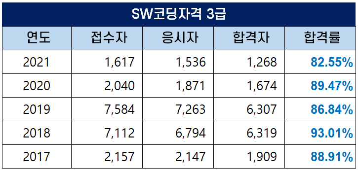SW코딩자격 3급 합격률