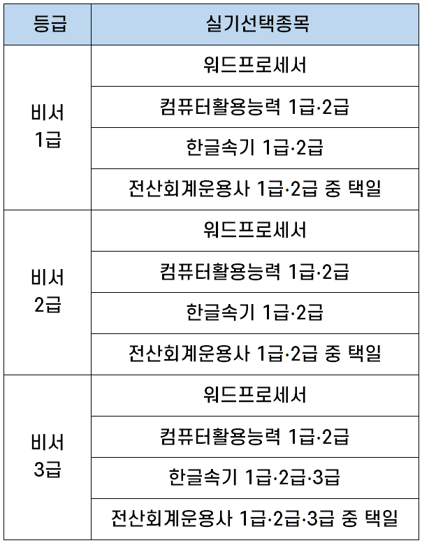 비서 실기 선택 종목