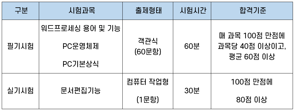 워드프로세서 자격시험은 다른 국가기술자격시험과 마찬가지로 필기시험과 실기시험을 합격해야 자격증을 취득할 수 있습니다.