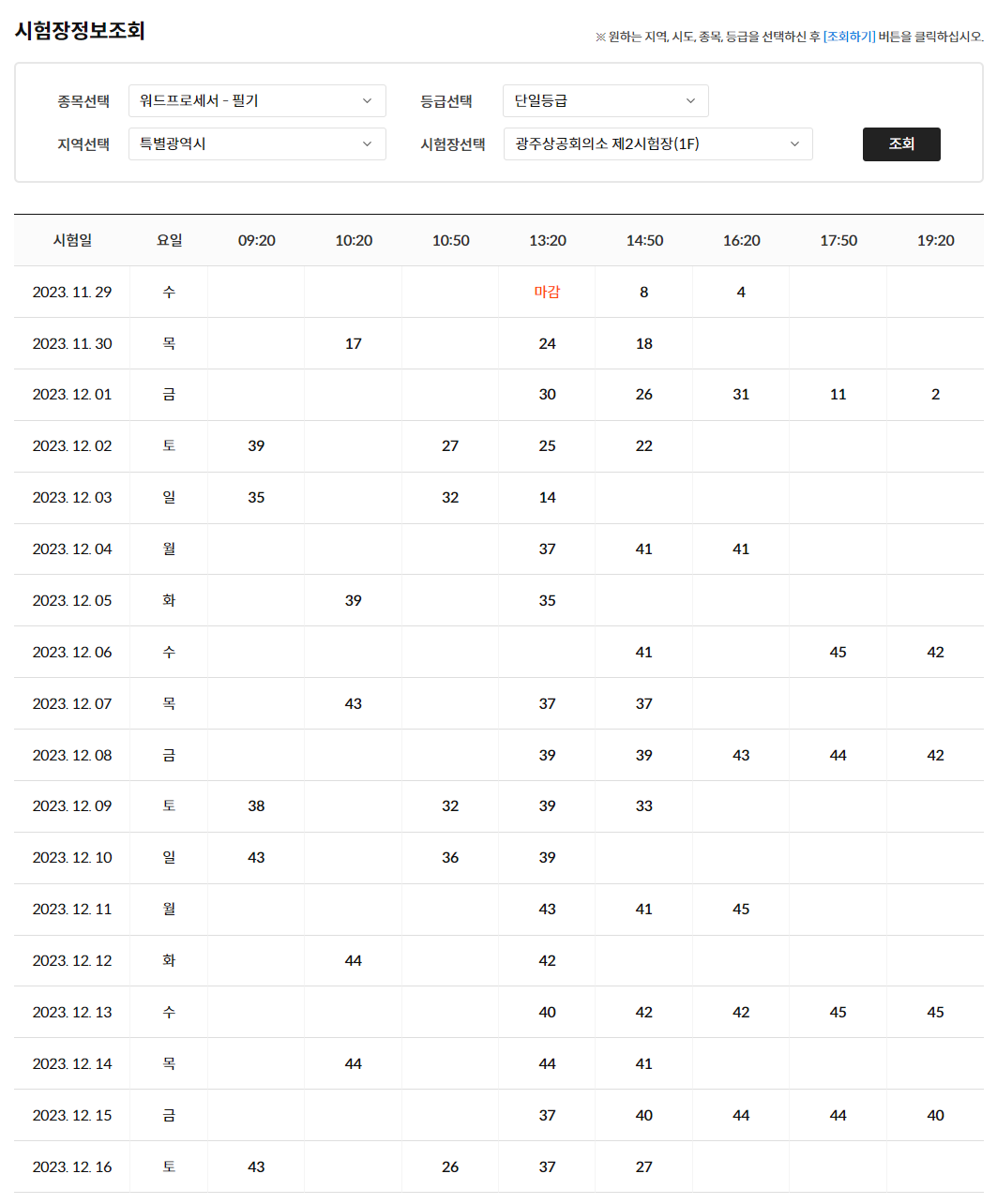 특히 주말인 토요일과 일요일에 보는 시험은 다른 요일 시험보다 빠르게 시험이 마감되는 경향이 있으니 주말에 시험을 볼 계획을 가진 수험생은 미리 시험 일정을 검색해서 원서접수를 하는 것이 좋습니다.