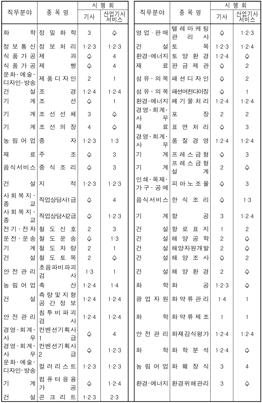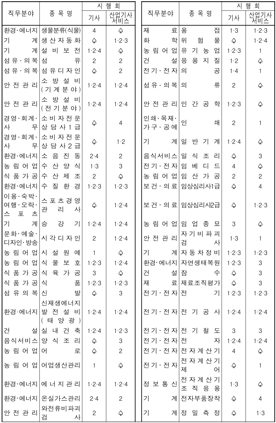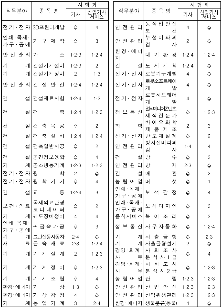 종목명이 가나다순으로 되어 있으니 직무분야와 상관없이 종목명으로 응시하고자 하는 종목의 시행회를 찾으시기 바랍니다.