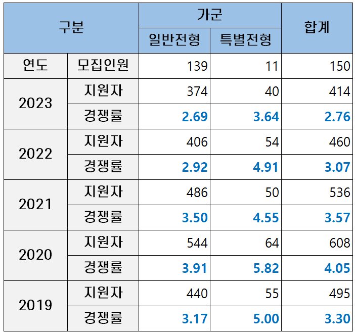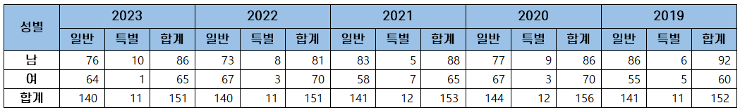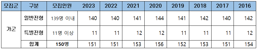 | 연도 | 모집인원 | 139 | 11 | 150 |
