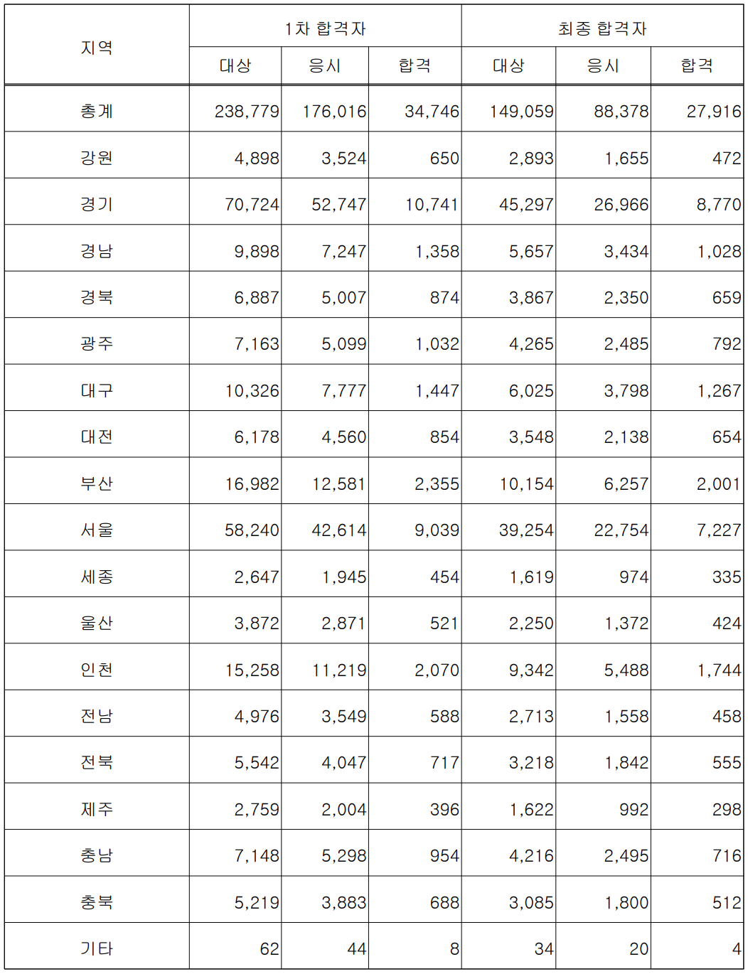 2022년 제10회 공인중개사 1차 시험 응시자 176,016명 중 34,746명이 합격해 합격률은 19.74%를 기록했는데요. 지난해 21.35%보다 소폭 하락했습니다.