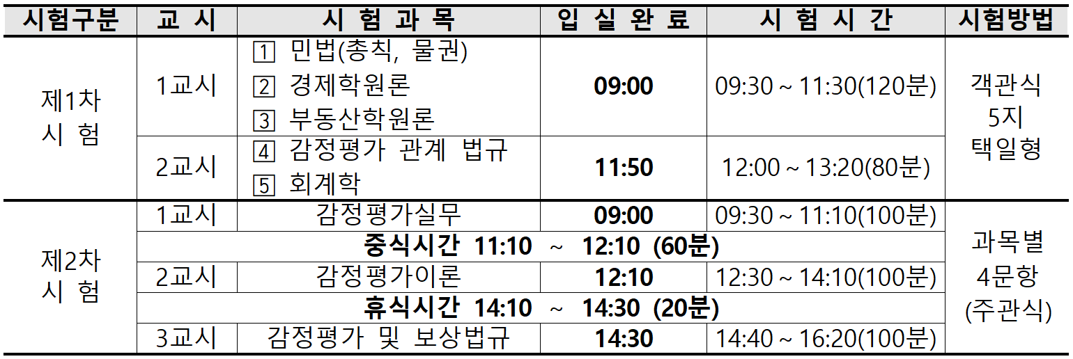 감정평가사 시험 시간표