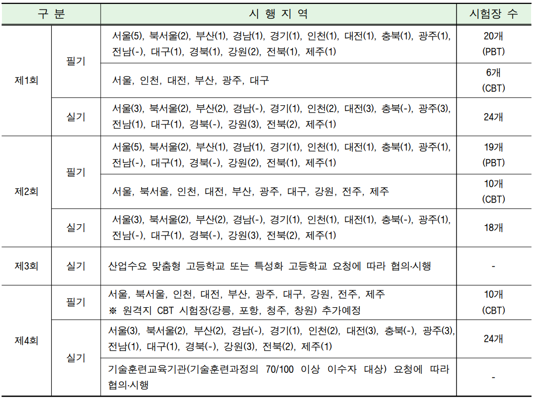 각 회차별 CBT시험장소에 따른 상세한 시험 일정 및 시간은 KCA 자격검정 홈페이지에서 별도로 공지됩니다.