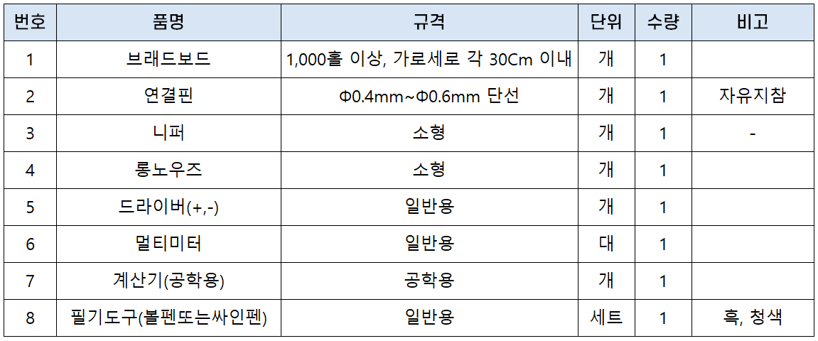 무선설비산업기사 실기시험 응시자는 아래 목록에 있는 준비물을 지참해야 합니다.