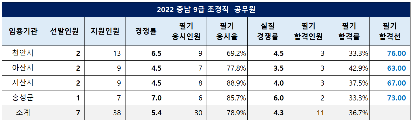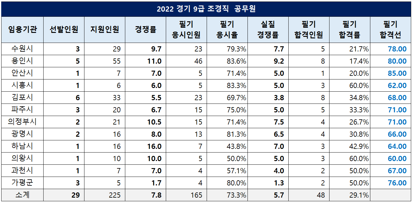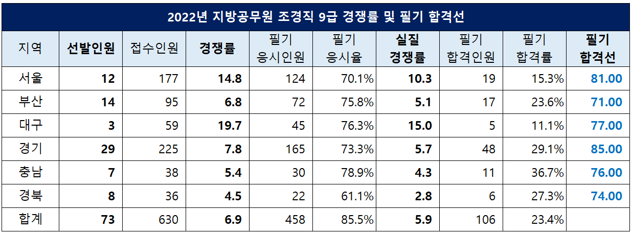 | 2022년 지방공무원 조경직 9급 경쟁률 및 필기 합격선 | |||||