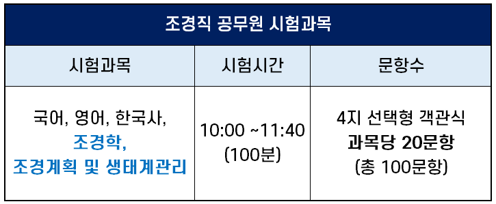 이번 포스팅에서는 매년 공채 시험을 시행하고 있는 지방공무원 9급 조경직 시험 과목, 시험 일정, 가산점 자격증, 선발인원, 필기 합격선 등을 정리했습니다.