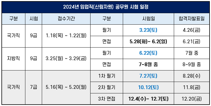2024년 임업직 공무원 시험일정