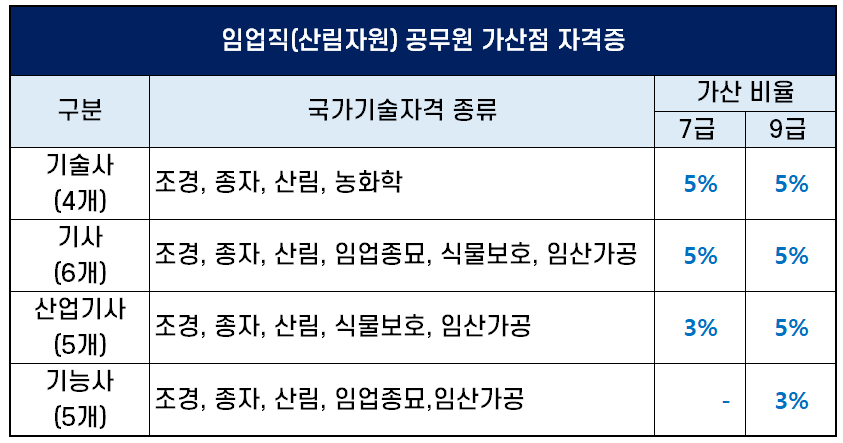 임업직 공무원 가산점 자격증