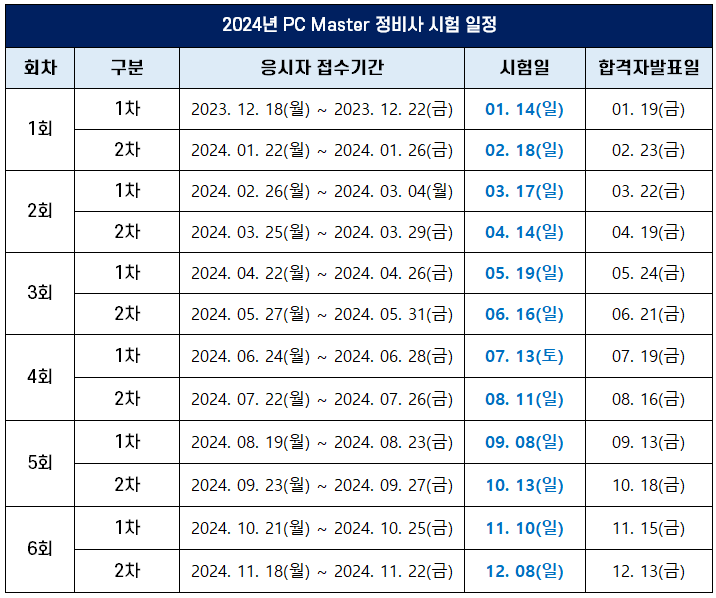 | 2024년 PC Master 정비사 시험 일정 | ||||