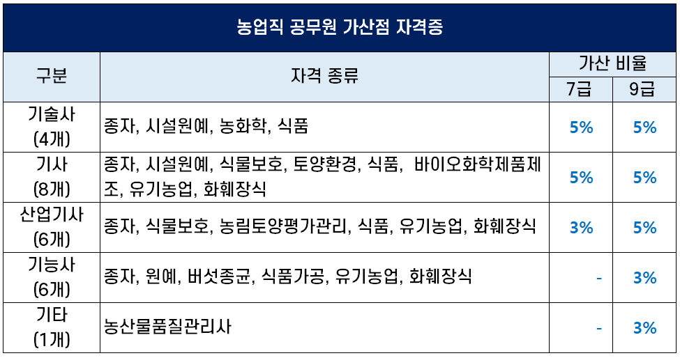 농업직 공무원 가산점 자격증