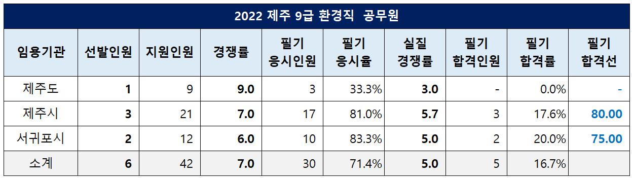 | 2022년 9급 환경직 공무원 경쟁률 및 합격선 (필기 커트라인) (0) | 2022.12.13 |