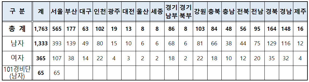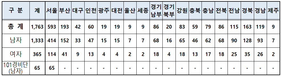 2023년 상반기 순경 공채는 서울경찰청이 593명, 부산 경찰청이 193명을 선발하며, 지역별 채용인원은 다음과 같습니다.