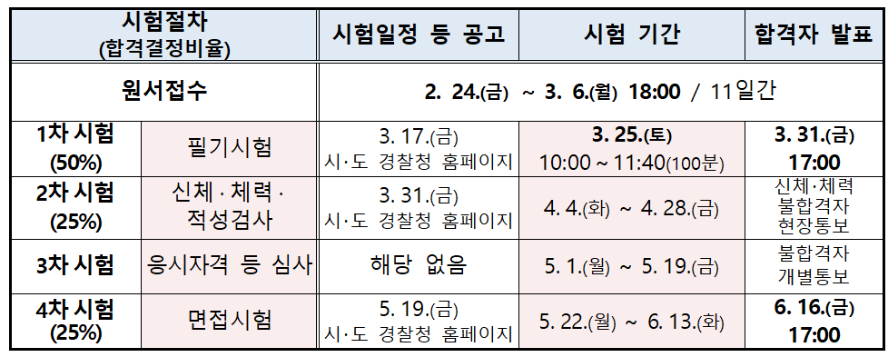 2024년 제73기 경찰간부후보생 선발시험(경위 공채) 일정