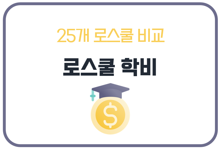 25개 로스쿨의 입학금과 학기당 수업료(등록금)및 6학기(3년) 동안의 총 학비 현황은 아래 표와 같습니다.