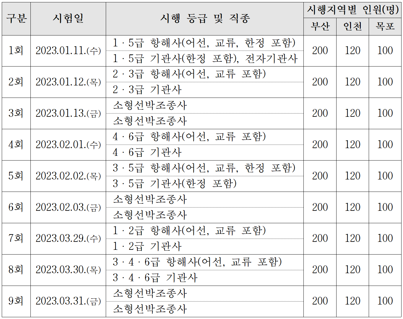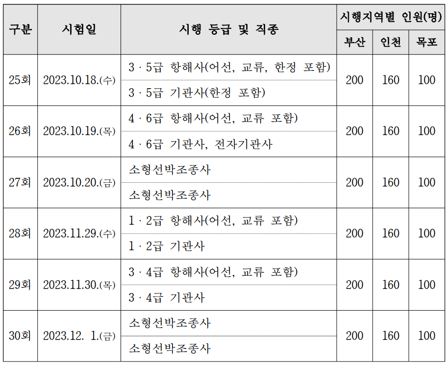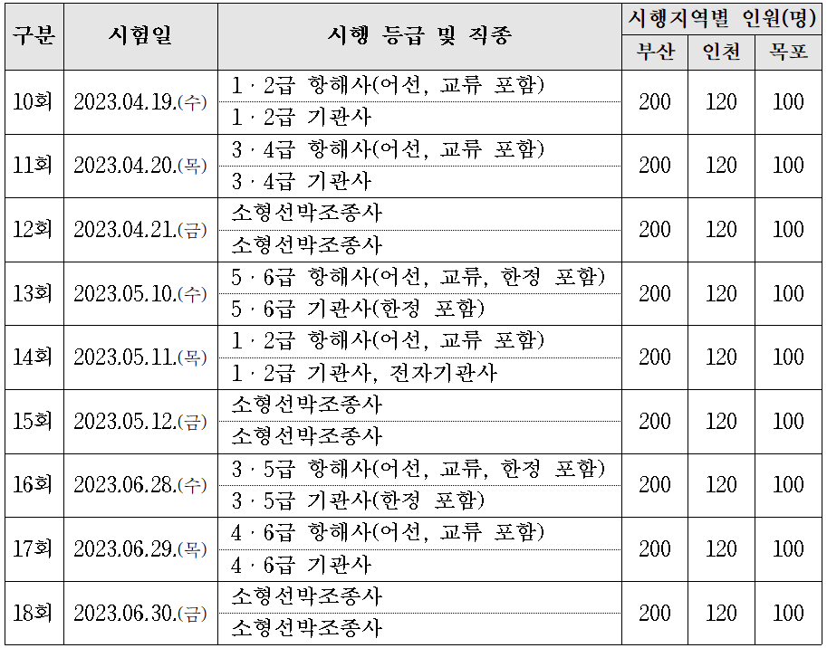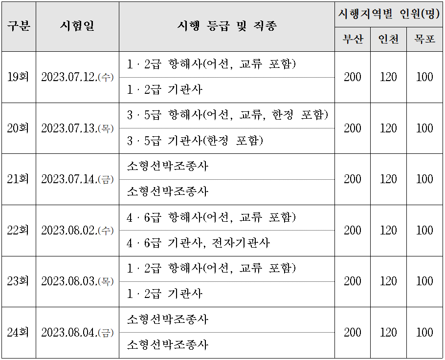 2023년 해기사 시험 일정