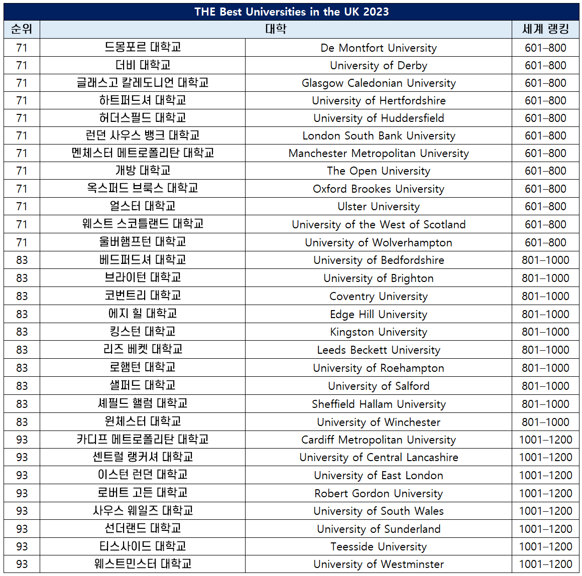 | 53 | 노섬브리아 대학교 | Northumbria University at Newcastle |
