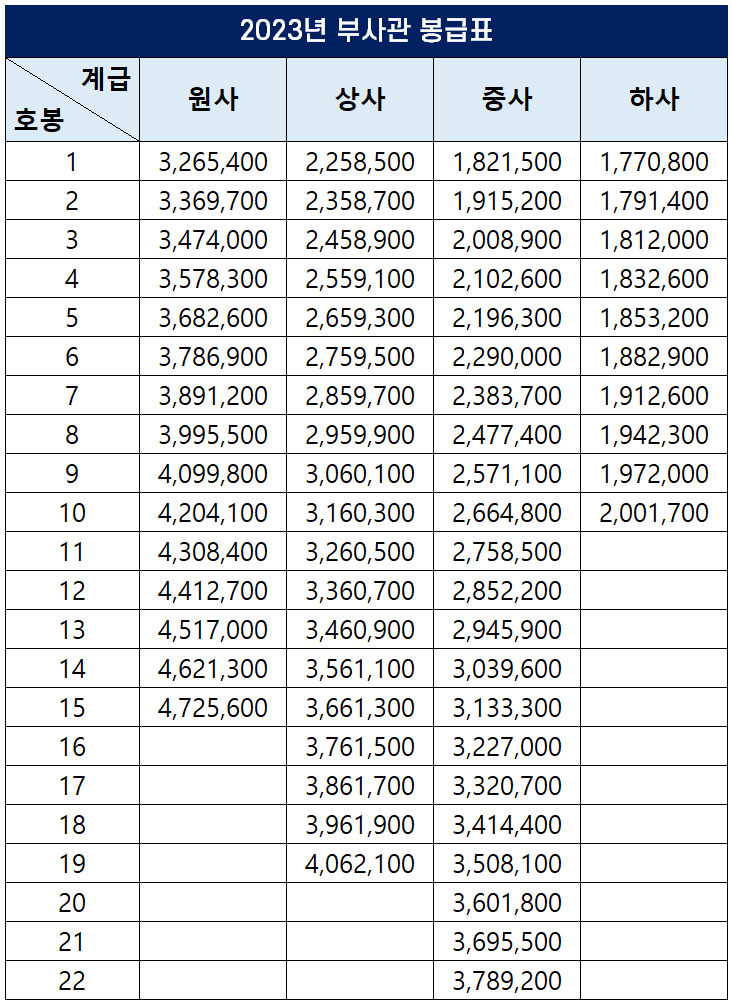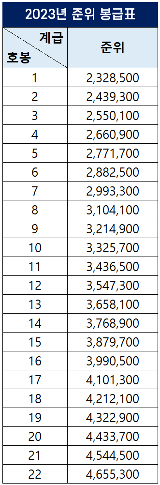 | 2023년 공무원 봉급표 by 공무원 보수 규정 개정 (0) | 2023.01.03 |
