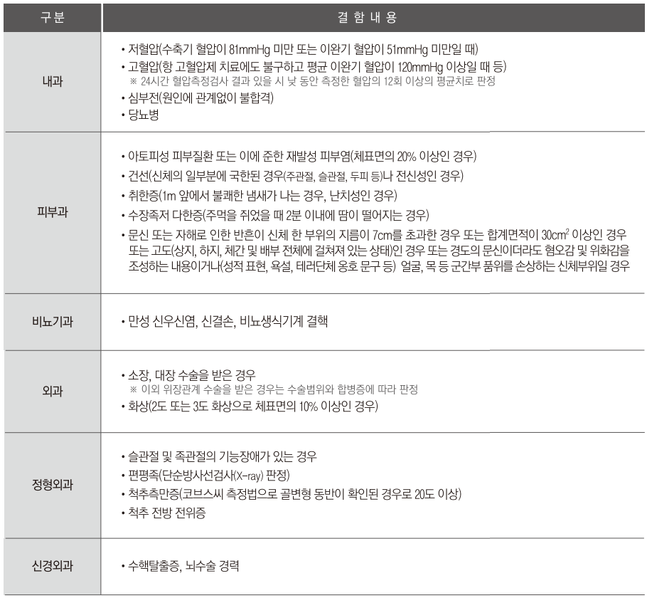 ※ 신체검사 주요 불합격 기준
