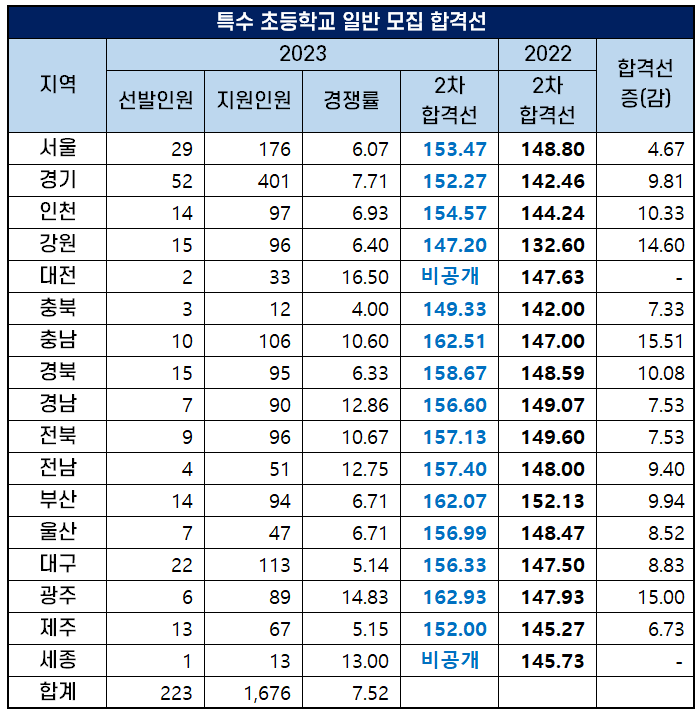 2023년 중등 특수 교사 경쟁률 및 합격선 비교 정리