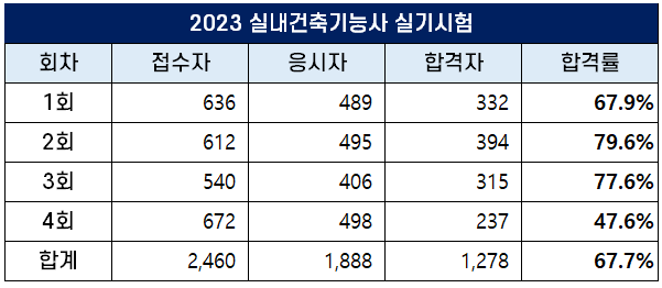 2023년 실내건축기능사 합격률