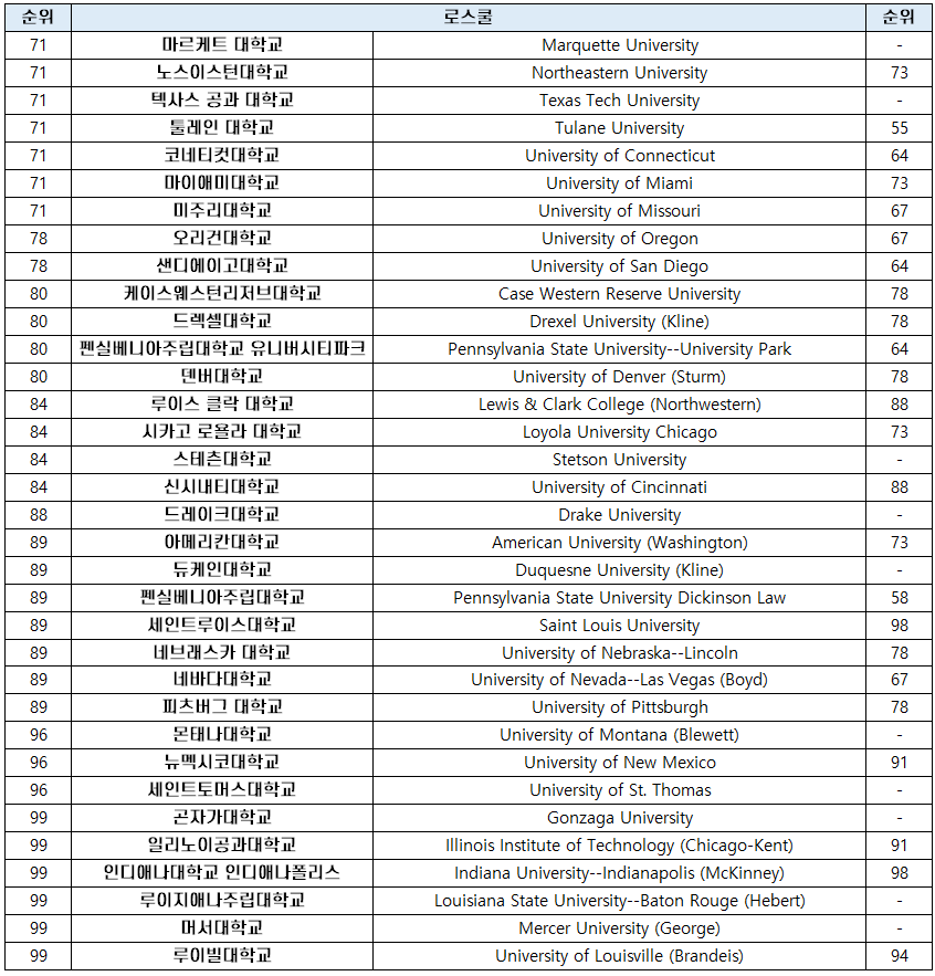 | 99 | 일리노이공과대학교 | Illinois Institute of Technology (Chicago-Kent) |