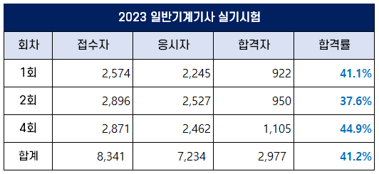 2023년 일반기계기사 합격률