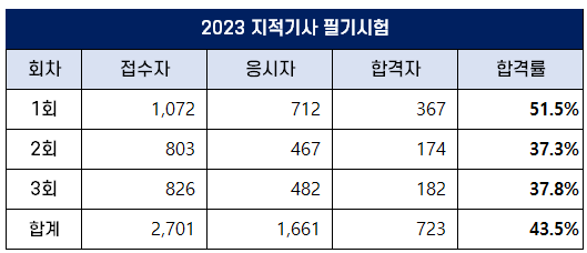 지적기사 필기시험 합격률