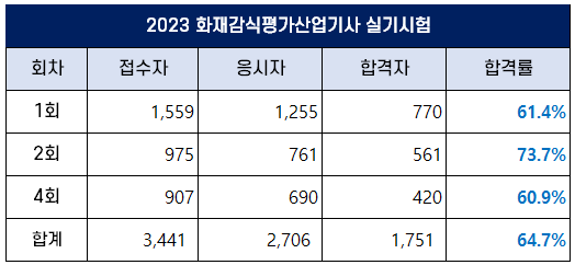 2023년 화재감식평가산업기사 합격률