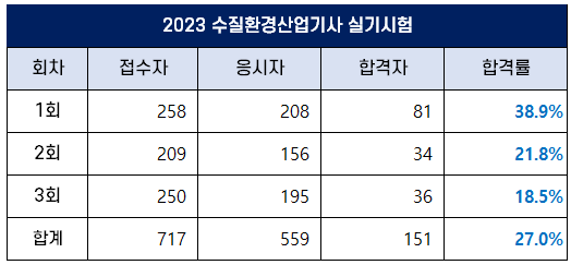 2023년 수질환경산업기사 합격률