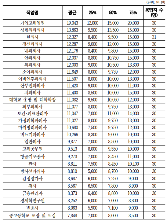 | 1위 | 기업고위임원(CEO) | 19,043 |
