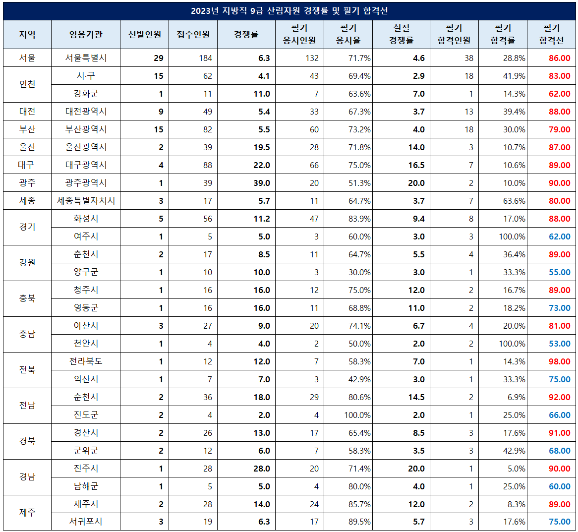 이번 포스팅에서는 먼저 전국 17개 시도 지방직 공무원 주요 모집 직렬의 경쟁률과 합격선을 비교한 후, 각 지역별 모든 직렬의 지방직 필기 합격컷을 정리했습니다.