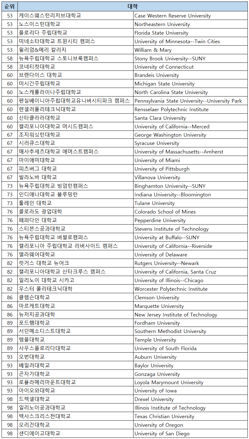 | 58 | 뉴욕주립대학교 스토니브룩캠퍼스 | Stony Brook University--SUNY |