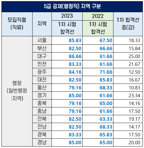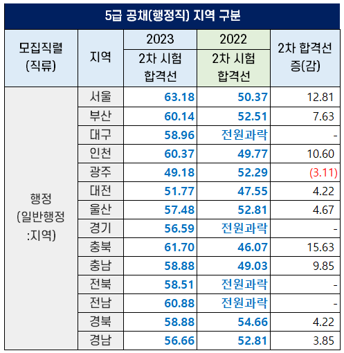 2023년 5급 공채 행정직 합격자 발표 및 합격선