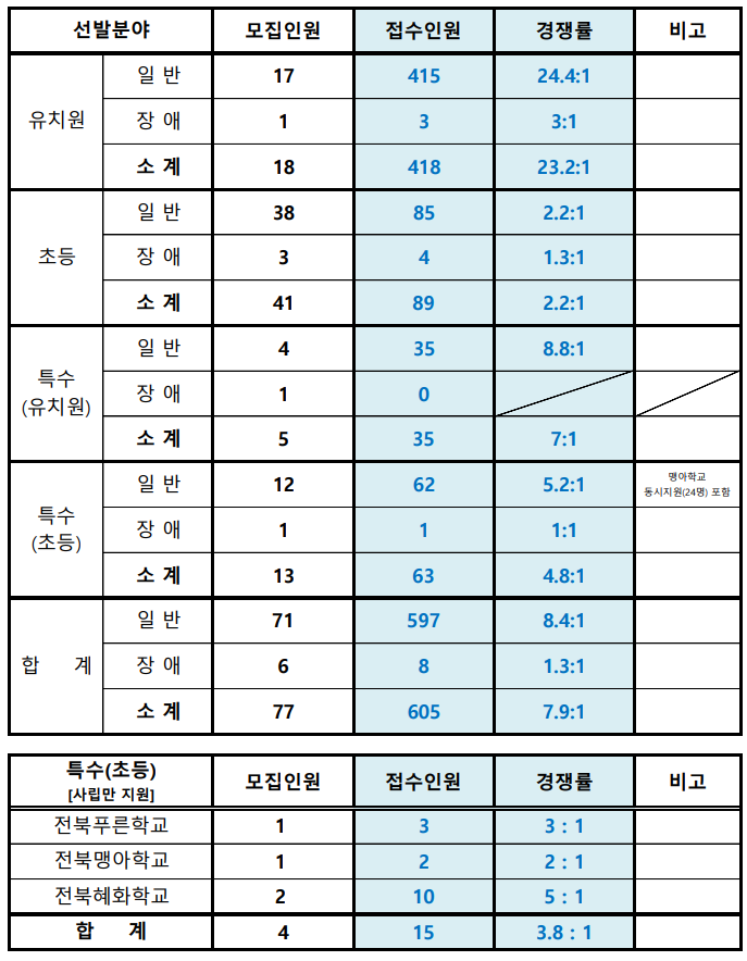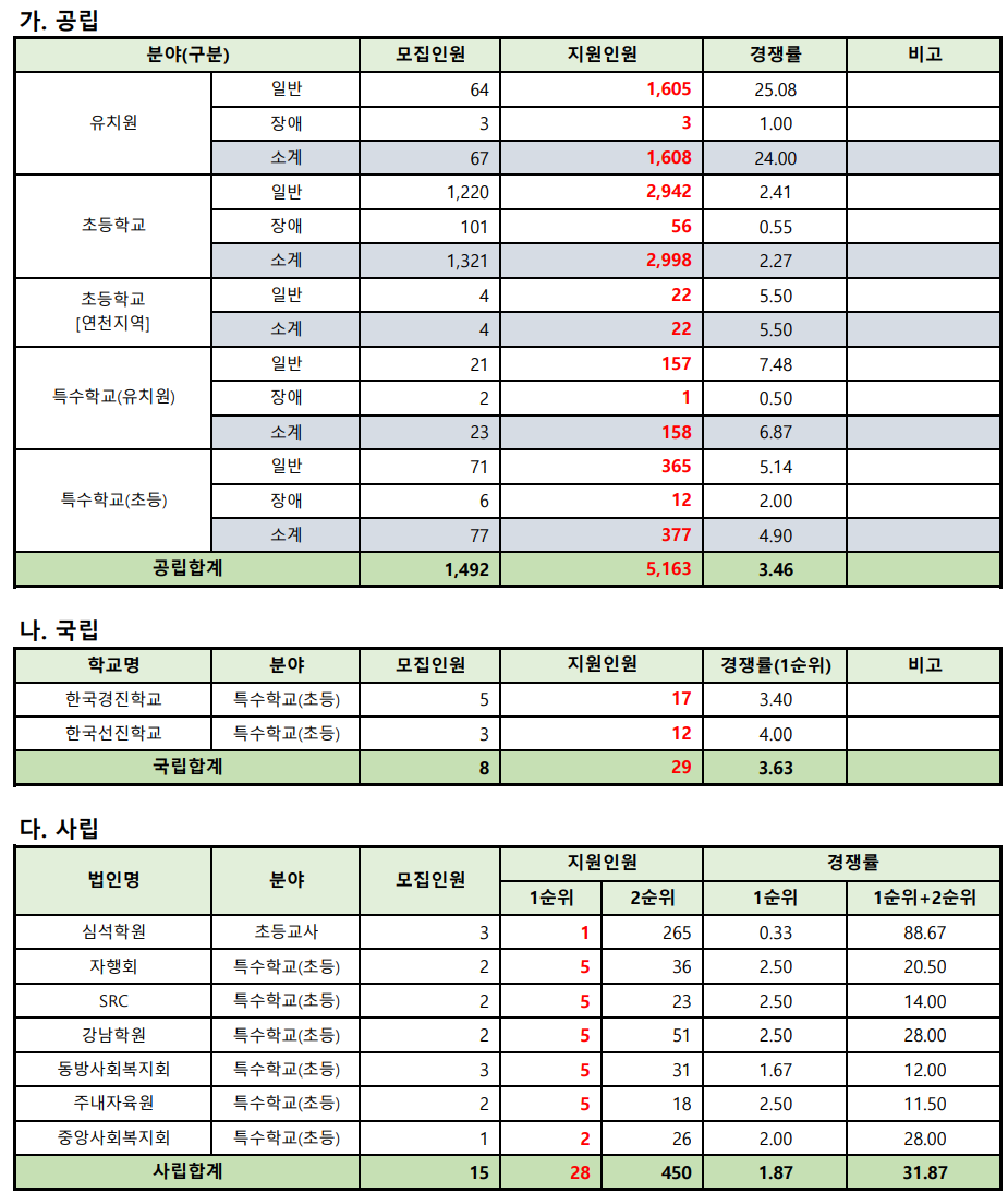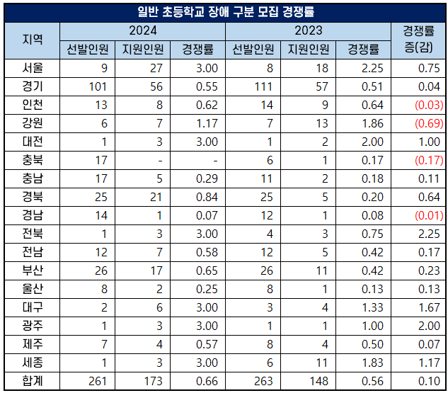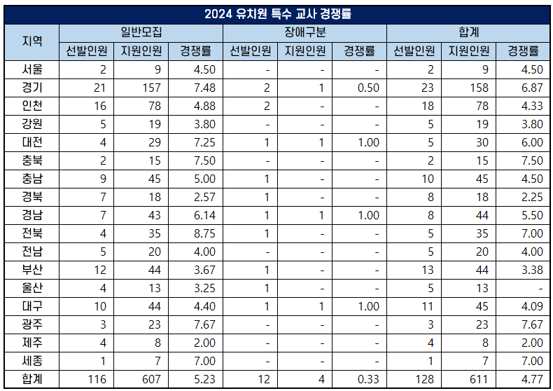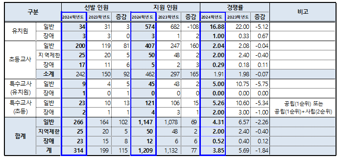 2024학년도 특수학교(유치원·초등) 임용 고시 경쟁률