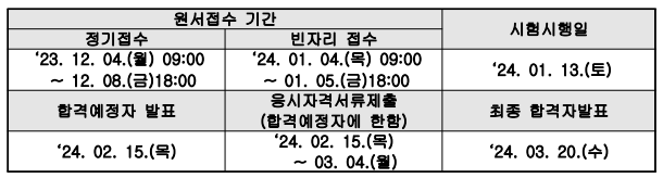 | 응시자격서류제출 | 2024.2.15(목) ~ 3.4(월) |