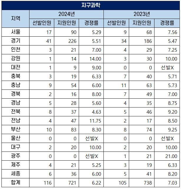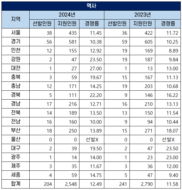 | 지역 | 선발인원 | 지원인원 | 경쟁률 |