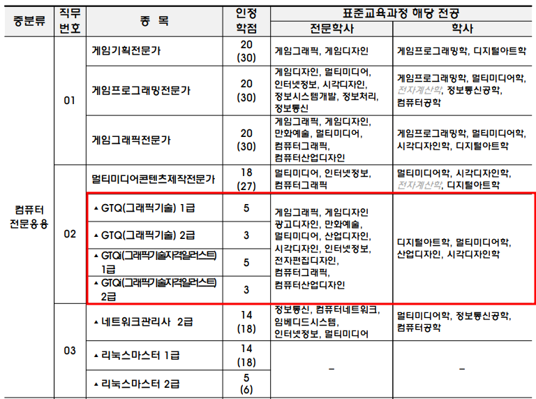 국가공인자격증인 GTQ와 GTQi는 1급을 취득하는 경우 학점은행제 학점 5학점을, 2급을 취득하는 경우 3학점을 인정하고 있습니다.
