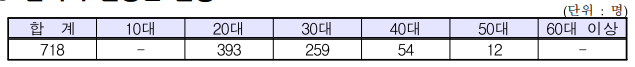 2023년 제60회 세무사 2차 시험 합격자 연령별 현황을 보면 20대가 3930명으로 가장 많고, 30대가 259명, 40대가 54명, 50대가12명입니다.
