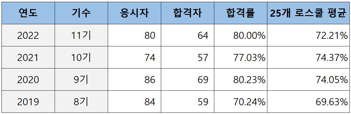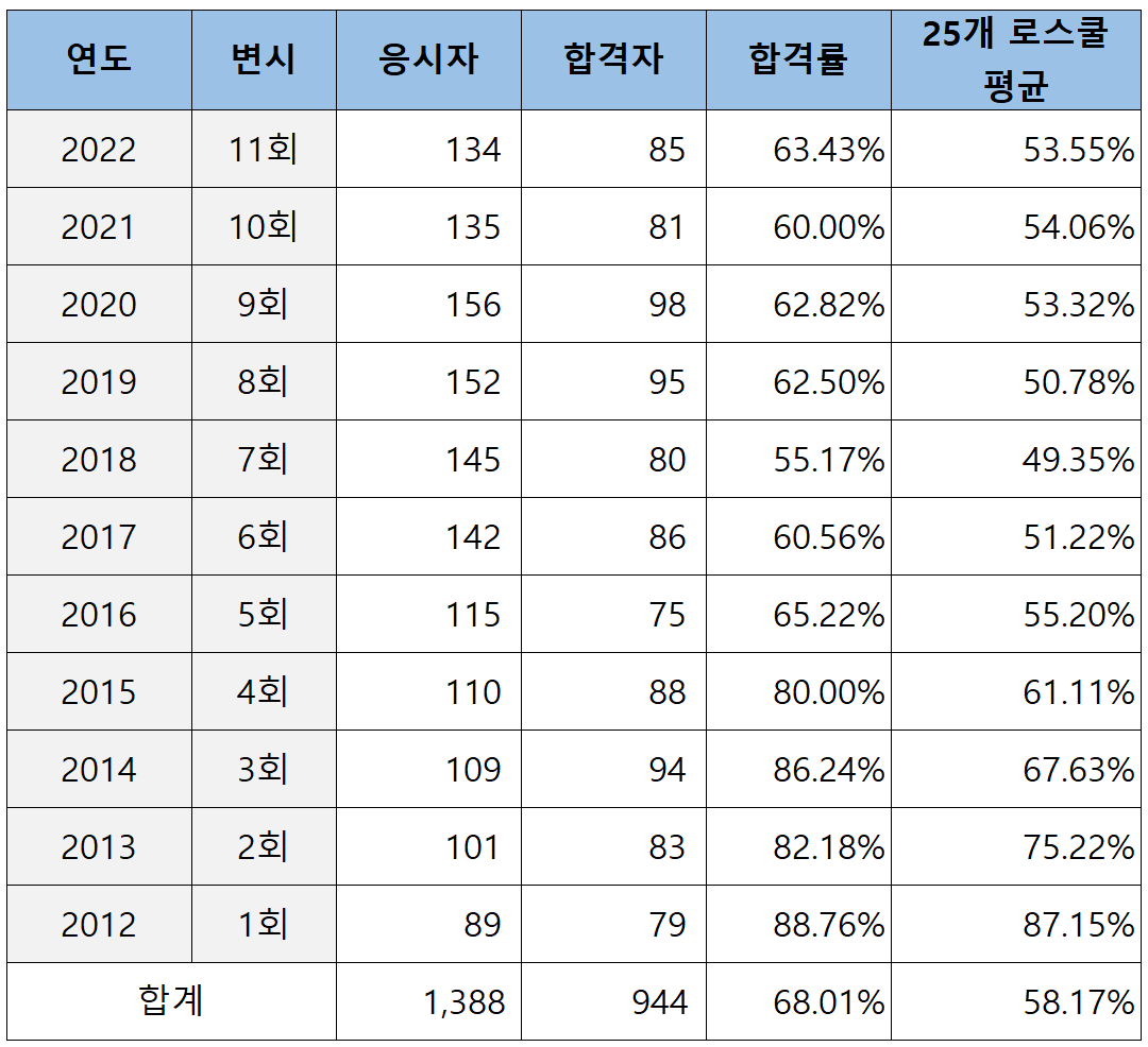 25개 로스쿨의 변호사시험 합격률 현황과 순위는 아래 포스팅을 보시기 바랍니다.