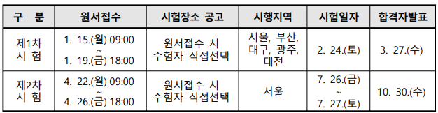 ◎ 1차 시험 합격자 발표일: 2024. 3. 27(수) 09:00