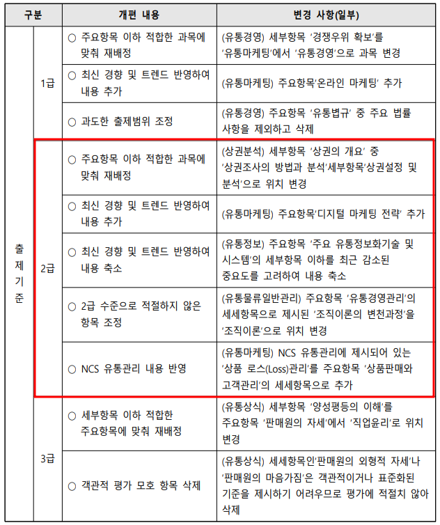 2024년 유통관리사 출제기준 변경