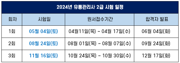 | 2024년 유통관리사 2급 시험 일정 | |||