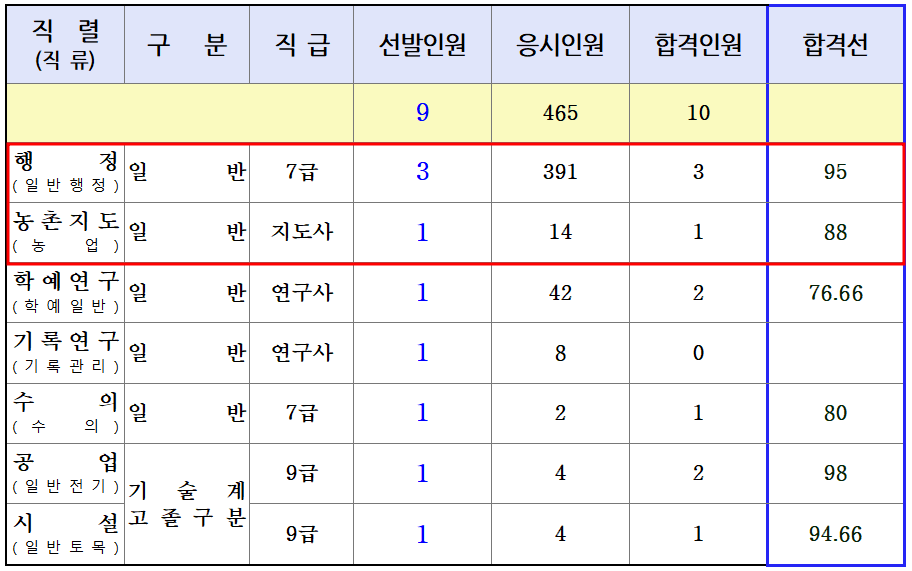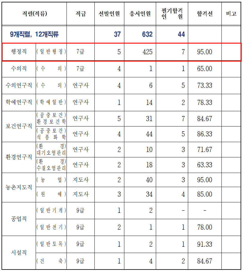 일방행정직 경쟁률 및 합격선 비교