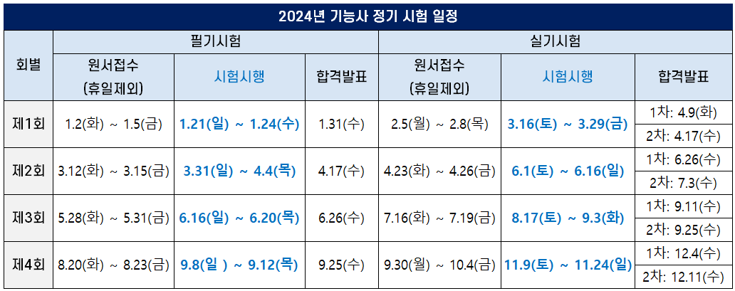 2024년 상시 기능사 시험 일정은 아래 포스팅에 별도로 정리했습니다.