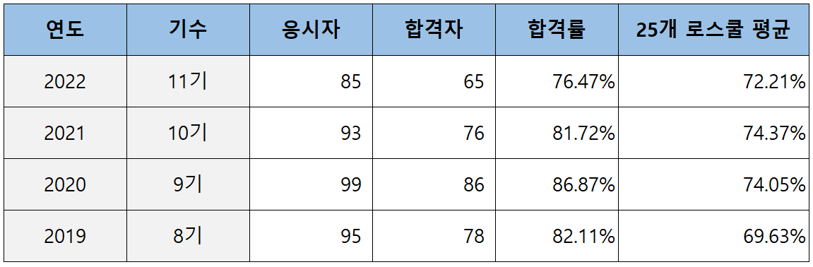 2022년 제11회 변호사시험 대학별 합격률 (+ 로스쿨 초시 합격률 순위)