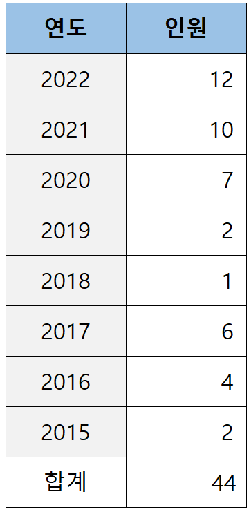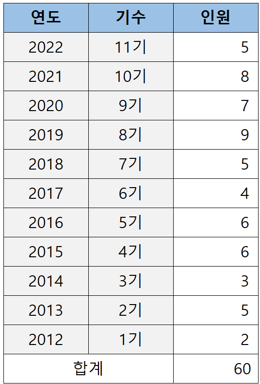 2022년에는 역대 가장 많은 12명의 판사를 배출해 좋은 아웃풋을 보였습니다.